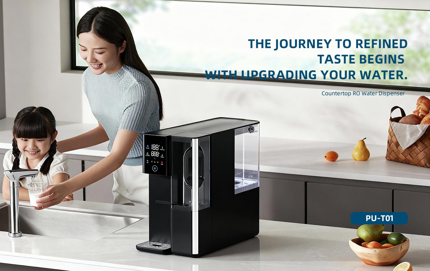 Perfect for renters or small apartments. It requires no drilling or plumbing — just plug in and enjoy purified water instantly. PU-T01 Countertop Reverse Osmosis Water Dispenser (Purifier) combines advanced filtration with convenience, offering portable and flexible water purification anywhere in your home.