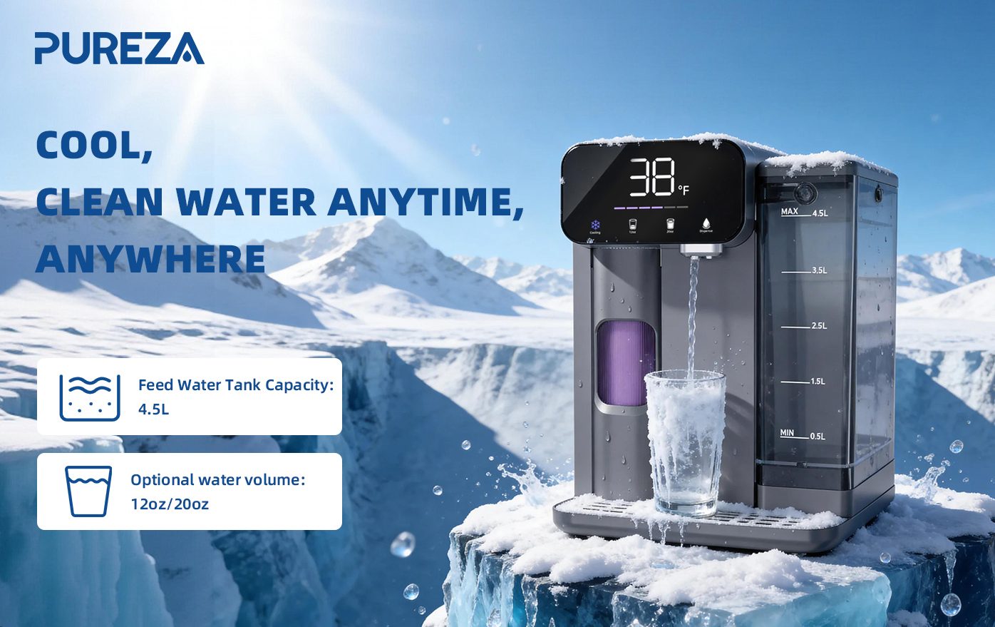 Ob zu Hause, im Büro oder an heißen Sommertagen – der Tischwasserfilter PU-T02 bietet eine zuverlässige und komfortable Lösung für kaltes Wasser.