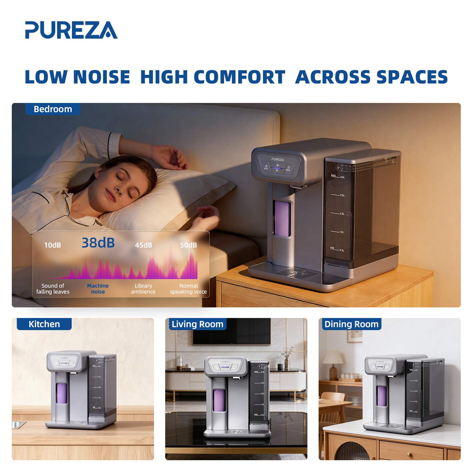 Mit einem Geräuschpegel von nur 38 dBA arbeitet der PU-T02 beeindruckend leise – ideal für Schlafzimmer, Büros und offene Küchen. In Kombination mit einem hocheffizienten System, das nur 1 kWh/Tag verbraucht, liefert er gereinigtes, gekühltes Wasser mit minimaler Geräuschentwicklung und langfristigen Energieeinsparungen.
