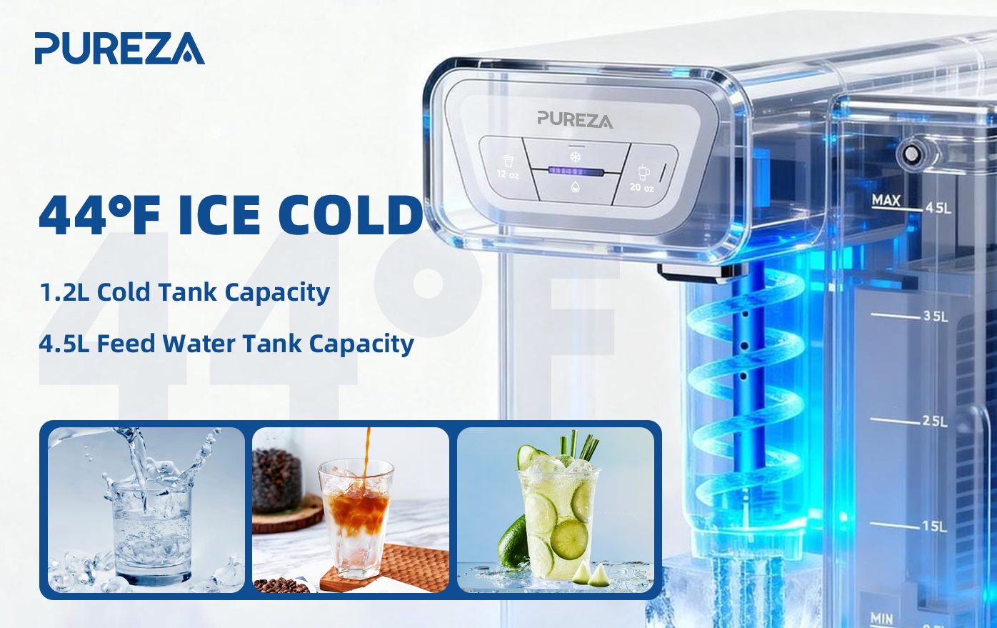 Kaltes Wasser schmeckt nicht zufällig besser, sondern ist ein bewusstes Designmerkmal. Die Temperatur steigert die Erfrischung, während die Filtration für Reinheit und Geschmack sorgt. Durch die Kombination von effektiver Kohlefiltration und präziser Kühlung verwandelt der PU-T02 alltägliches Leitungswasser in ein konstant genussvolles Trinkerlebnis.